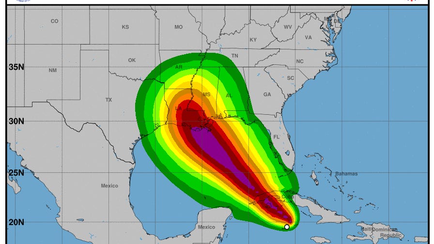 Historical data indicate that the entire 5-day path of the center of the tropical cyclone will remain within the cone about 60-70 of the time. Models forecast potentially dangerous Gulf Coast hurricane Ida. Arthur Bertha Cristobal Dolly Edouard Fay Gonzalo Hanna Isaias Josephine Kyle Laura Marco Nana Omar Paulette Rene Sally Teddy Vicky and Wilfred.